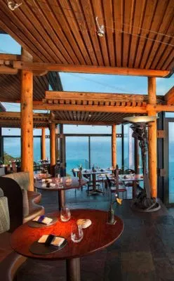 - Three outdoor pools with panoramic coastal and cliffside views
