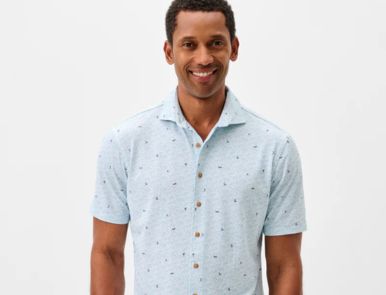 This Printed Mesh Short Sleeve Button-Up Shirt features a lightweight, breathable mesh construction for comfort in warmer weather. The Rowing Printed Knit adds playful, nautical-inspired style, while the relaxed fit ensures mobility and ease. Perfect for casual outings or summer gatherings, it pairs easily with shorts or pants, blending performance-friendly fabric with a fun, polished aesthetic that’s versatile enough for both day and evening wear.