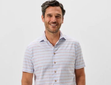 Cotton Blend Short Sleeve Button Up Shirt – Leander Printed Slub Cotton